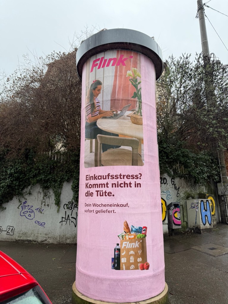 Die Lösung: Flink. Gepriesen sei der Erfinder dieser Dienstleistung, auf die nun wirklich keiner gewartet hat, außer bei Corona. Geld verdienen diese Firmen auch noch keins, dazu sind die Liefeenschen, oft aus schweren Verhältnissen, ausgebeutet, werden von der Software rumgeschickt.